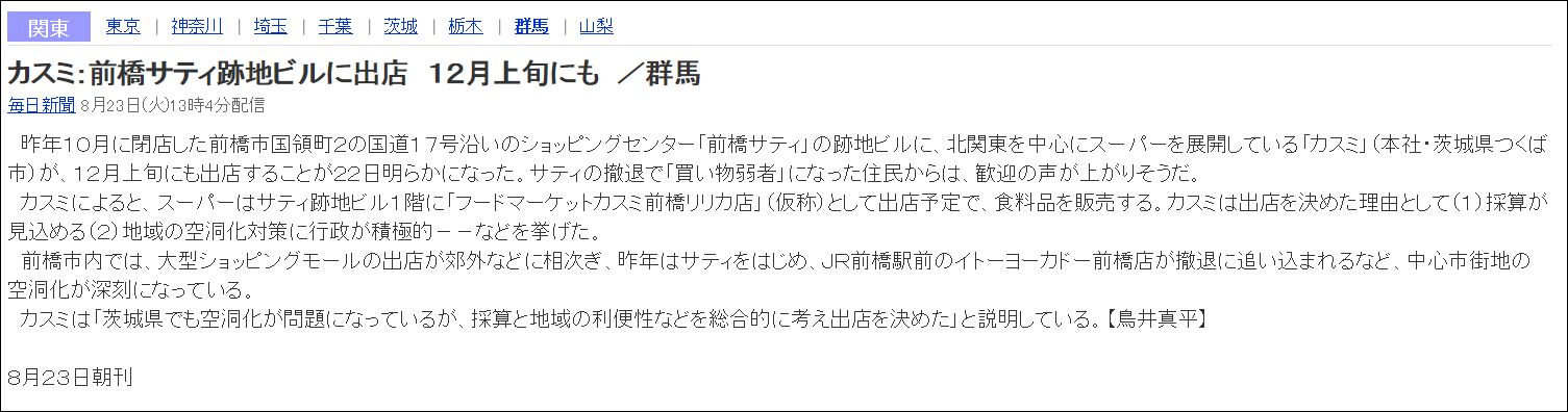 そういえば昨年閉店した【前橋サティ】ですが、この度【カスミ】が出店するという事で少しでも活気ある街になればと思います。